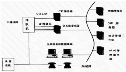 基于計算機(jī)語音板卡的方式(板卡方案,微機(jī)方案):這種方式的基本思想是,在微機(jī)平臺上集成各種專用的計算機(jī)語音板卡(如:呼叫處理卡、語音資源卡、服務(wù)坐席卡),完成通信接口、語音處理、傳真處理、座席轉(zhuǎn)接等功能,再結(jié)合外部的計算機(jī)網(wǎng)絡(luò)來實(shí)現(xiàn)應(yīng)用系統(tǒng)的需求。板卡方案的自動呼叫分配功能由軟件ACD實(shí)現(xiàn)。