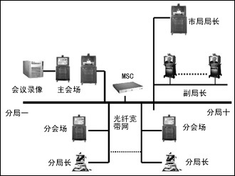 桌面系統(tǒng)主要為市局局長(zhǎng)、副局長(zhǎng)和分局長(zhǎng)配備,根據(jù)不同的需要選擇不同機(jī)型。市局局長(zhǎng)的桌面系統(tǒng)選用VCON公司的柜式終端MediaConnect