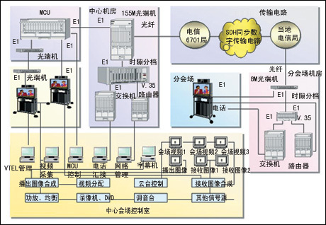 設(shè)備選用VTEL美國視訊公司銀河(Galaxy)755型視訊終端設(shè)備。該設(shè)備基于開放式的PC界面,操作簡單、升級(jí)容易,具有強(qiáng)大的多媒體和數(shù)據(jù)傳輸功能;具有先進(jìn)的網(wǎng)絡(luò)管理功能;可靈活與局域網(wǎng)或與Internet相連接;設(shè)有多種連接端口;智能化程度較高。多點(diǎn)會(huì)議服務(wù)器MCU設(shè)備具有較強(qiáng)網(wǎng)絡(luò)適應(yīng)能力,可連續(xù)開機(jī)工作,運(yùn)行穩(wěn)定。北京法院電視會(huì)議系統(tǒng)由1臺(tái)24點(diǎn)MCU設(shè)備和24臺(tái)VTEL銀河755型電視會(huì)議終端設(shè)備組成。