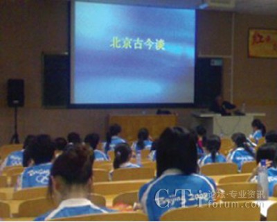 7月25日中央財(cái)經(jīng)大學(xué)的課堂里,近百位奧運(yùn)觀眾呼叫中心的志愿者聆聽了北京第二外國語大學(xué)西班牙語呂龍根教授的講座——“北京古今談”。呂教授幽默的語言、澎湃的激情,感染并征服了在座的每一位志愿者。教授從中國古代的六大古都(北京、西安、洛陽、開封、南京、杭州)談到古代北京的五朝建都(遼、金、元、明、清),從北京偉大的中軸線,談到北京建筑的風(fēng)水學(xué),從北京的胡同和四合院,談到北京的著名小吃,等等等等?芍^是古今暢想、無所不談,真正讓我們領(lǐng)略了何為學(xué)者風(fēng)范。