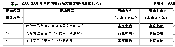 三、2000-2004年度,中國VPN市場發(fā)展的驅(qū)動與制約因素
