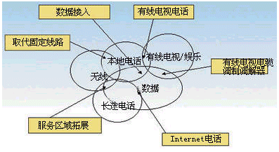 數(shù)據(jù)服務(wù)同本地電話服務(wù)的融合,是不來最重要的融合趨勢之一,其主要體現(xiàn)在通過本地電話可以解決數(shù)據(jù)業(yè)務(wù)的接入問題,可以提供窄帶或?qū)拵У慕尤肽芰。同時,可以為Internet服務(wù),如電子郵件服務(wù)同電話話音服務(wù)結(jié)合起來創(chuàng)造條件。一種未來的發(fā)展方向就是利用電話來接收電子郵件同時可以用電子郵件的方式閱讀語言信箱中的留言!奥犽娮余]件,看語言信箱”是對這種融合服務(wù)的最好描述。而數(shù)據(jù)業(yè)務(wù)同長途電話業(yè)務(wù)的融合集中于通過VoIP技術(shù)提供長途電話服務(wù),競爭收入最大的電信市場。數(shù)據(jù)服務(wù)同有線電視娛樂服務(wù)的融合主要體現(xiàn)在以Cable Modem做為數(shù)據(jù)接入手段和視頻點(diǎn)播這樣的娛樂服務(wù)。通過Cable Modem,有線電視網(wǎng)也可以提供本地電話和長途電話接入業(yè)務(wù),象AT&T和TCI 及MediaOne 正在進(jìn)行的電話業(yè)務(wù)實(shí)驗。而寬帶的數(shù)據(jù)接入則為數(shù)據(jù)服務(wù)的寬帶化提供了條件。