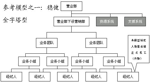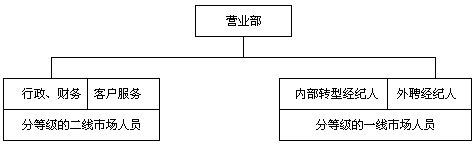 此五種模式建立在營業(yè)部基礎(chǔ)上,在券商總部,建議設立垂直的業(yè)務管理機構(gòu),即經(jīng)紀業(yè)務總部實行事業(yè)部制,下設分工專業(yè)的市場營銷部、客戶服務部、經(jīng)紀人訓練部和綜合管理部等。
