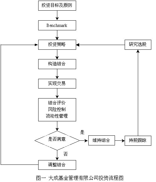程序化是公司持續(xù)、健康發(fā)展的首要基礎,也是公司擴大規(guī)模、規(guī)范管理的必要條件。大成選擇了清晰而明確的投資流程(見圖一)。