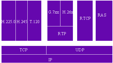 H.323是一個框架性協(xié)議,它是由系列協(xié)議組成的,圖5列出了H.323棧的基本內容。