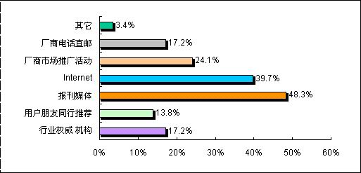此次調(diào)查顯示,由于視頻會議系統(tǒng)的行業(yè)性相對較強,目前用戶在了解視頻終端會議系統(tǒng)產(chǎn)品時,報刊媒體、Internet、廠商推廣活動、廠商電話直郵和行業(yè)權(quán)威機構(gòu)成為主要的信息來源渠道。值得注意的是網(wǎng)絡(luò)的普及使得更多的用戶也選擇Internet作為了解信息的重要途徑。但對各視頻會議系統(tǒng)的廠商而言,由于客戶群體相對龐大,分散區(qū)域較為廣泛,在作好直銷的同時,也應(yīng)該加強渠道的建設(shè),以更及時和準確地了解到用戶采購和招標的信息,同時也能夠降低銷售成本。