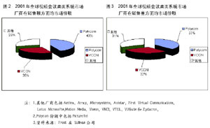 國際視頻會議廠商瞄準(zhǔn)了中國市場,而國內(nèi)也不乏本土視頻產(chǎn)品提供商,如華為、中興、清華同方視訊、新太、維訊新科、瑞福特等。雖然有本土優(yōu)勢,但他們的實(shí)力和影響力還遠(yuǎn)遠(yuǎn)不夠。在國內(nèi)市場中,占有絕對份額的IP視頻會議系統(tǒng)還是國外產(chǎn)品。2001年,國外廠商從國內(nèi)市場拿走了近10億元人民幣。