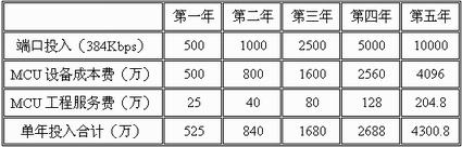 表五 網(wǎng)通商用視訊系統(tǒng)建維費(fèi)用