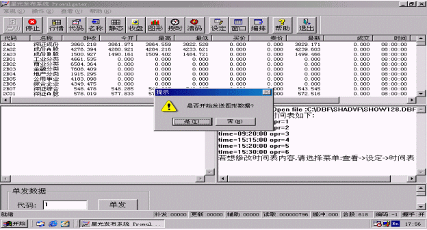 選擇<行情>按鈕進行證券信息發(fā)布,系統(tǒng)自動彈出<提示>窗口,如圖3.5