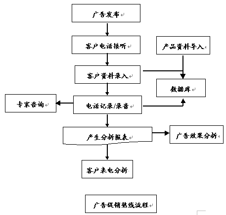 廣告熱線是在呼叫中心系統(tǒng)中設(shè)立專欄,為廣告中的產(chǎn)品或服務(wù)提供更詳細(xì)的資料。首先應(yīng)將需要在廣告中出現(xiàn)的詳細(xì)內(nèi)容或不適合在廣告中出現(xiàn)的內(nèi)容按照要求導(dǎo)入呼叫中心系統(tǒng),準(zhǔn)備就緒后,就在媒體或其他介質(zhì)上做廣告,其中廣告的內(nèi)容中含廣告熱線號碼。電話號碼建議采用800電話,以提高客戶撥打電話的積極性。呼叫中心會(huì)記錄打進(jìn)的每一個(gè)電話,并且提供完成的系統(tǒng)報(bào)表。這樣可以彌補(bǔ)廣告中提供給消費(fèi)者內(nèi)容不足的缺陷,另一方面可以根據(jù)電話量判斷廣告的效果。