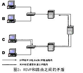 RSVP中引入每流狀態(tài)(per-flow state)的概念,對于數(shù)據(jù)通信和實(shí)時應(yīng)用通信而言,IP網(wǎng)絡(luò)同時扮演了面向無連接和面向連接網(wǎng)絡(luò)的兩個不同角色,提供兩種功能,這與其簡化設(shè)計原則相抵觸。