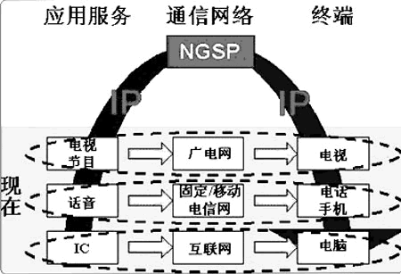 完全融合方式 完全融合的典型技術(shù)解決方案是目前業(yè)界普遍關(guān)注的焦點—NGN(下一代網(wǎng)絡(luò))。NGN的核心思路是重新生產(chǎn)和建立符合標準的服務(wù)、網(wǎng)絡(luò)和終端,徹底取代原有相對獨立的應(yīng)用服務(wù)、通信網(wǎng)絡(luò)和終端。由于技術(shù)標準制定復雜,網(wǎng)絡(luò)設(shè)備投資巨大,實施周期過長等因素,實現(xiàn)起來困難較大。