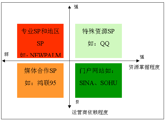 通常有風(fēng)險(xiǎn)資本注入,主要通過本地接入獲得運(yùn)營商推廣支持而產(chǎn)生收入,大多具20個(gè)省以上短信接入并在當(dāng)?shù)卦O(shè)有市場(chǎng)人員,其它地區(qū)采用全網(wǎng)接入發(fā)展業(yè)務(wù),與運(yùn)營商關(guān)系密切,業(yè)務(wù)主要以娛樂服務(wù)為主:華友、掌中萬維、靈通、空中網(wǎng);