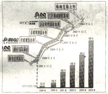 正是憑借著這些優(yōu)勢(shì),即時(shí)通信吸引聚集著一些忠誠(chéng)用戶,并開始搭建網(wǎng)絡(luò)廣告、無線增值等一系列各種潛在的交易平臺(tái)?梢韵胂螅粋(gè)絕佳的聊天窗口同時(shí)也是一個(gè)方便的交易窗口和暢通的付費(fèi)入口,即時(shí)通信正在摸索一條前所未有的盈利模式。有專家指出,經(jīng)過近5年的曲折前行,即時(shí)通信的盈利模式將在2005年逐步明確。以騰訊QQ為例,我們來剖析一下即時(shí)通信的盈利模式是如何由模糊走向清晰的。從1999年2月QQ發(fā)布到2000年5月,QQ迅速聚攏了10萬用戶。2000年8月,騰訊公司同廣東移動(dòng)合作,僅僅用了一年就扭虧為盈,實(shí)現(xiàn)了1000萬人民幣的純利潤(rùn)。