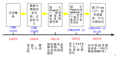 通過與手機芯片廠商密切合作并依靠韓國終端廠商較強的制造能力,KTF較早地解決了CDMA2000 1X手機與EV-DO手機的基本性能問題(性能對比見表3),不僅抵消了用戶的使用顧慮,而且也為不斷推出新的高速數(shù)據(jù)與增值業(yè)務奠定了較好的終端應用基礎。