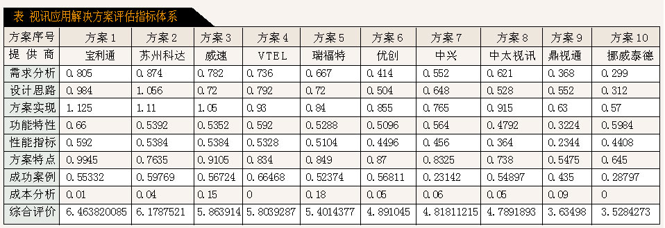 從評分結(jié)果上看,各廠商在基于需求分析的整個解決方案的設(shè)計思路方面,得分普遍不高,只有蘇州科達公司對用戶的行業(yè)特點、業(yè)務(wù)特點有較細致準確的分析,方案設(shè)計不僅體現(xiàn)了統(tǒng)籌規(guī)劃、資源共享的思想,還分析了不同視頻技術(shù)之間的差別,以及不同等級視訊應(yīng)用系統(tǒng)的設(shè)計思路。此外,對于成本或整體性能價格比分析的不清晰,也是此次方案中普遍存在的弱點。 視頻會議系統(tǒng)在最初只有專網(wǎng)的模式下確實是一項昂貴的應(yīng)用,但近幾年隨著新技術(shù)的不斷出現(xiàn),視頻會議已擁有了多種應(yīng)用模式,因此在應(yīng)用規(guī)模、應(yīng)用層次以及性能價格比上都有了大可探討的空間,用戶在規(guī)劃一個視訊應(yīng)用時,對于成本也有了許多新的要求,所以說,一個視訊方案是否成功,有沒有良好的性能價格比也是重要的考量因素。但是,在評估中只有極少數(shù)的方案有專門針對這方面的介紹內(nèi)容,大多數(shù)方案在這方面提及較少,或很膚淺。