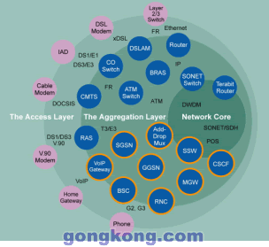 ATCA正在被廣泛應(yīng)用于無線網(wǎng),見圖2中橙色園環(huán)部分,這是由市場對成本效益,快速部署方案的需求驅(qū)動的。服務(wù)提供商和TEM均認(rèn)識到:用戶愿意為3G網(wǎng)絡(luò)的先進(jìn)功能所付出的只能是少量的附加費(fèi),因此從2G/2.5G向3G轉(zhuǎn)換必須以盡可能低的成本和盡可能靈活的方案來實(shí)施,許多TEM已經(jīng)將ATCA看成滿足快速發(fā)展的無線市場需求的唯一技術(shù)。若基于雙星千兆以太網(wǎng)交換互連,ATCA的性能已經(jīng)很好的滿足無線網(wǎng)要求,因?yàn)檫@些網(wǎng)絡(luò)實(shí)質(zhì)上是低帶寬而高運(yùn)算密度的網(wǎng)絡(luò),對于實(shí)時敏感的語音應(yīng)用而言,千兆以太網(wǎng)的高速度已經(jīng)消除了延遲的問題。