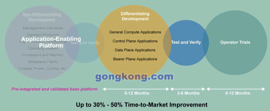 摩托羅拉將這種預(yù)集成并驗(yàn)證的基礎(chǔ)平臺稱之為面向應(yīng)用的平臺,采用這個方式可以極大的加快進(jìn)入市場的速度,使TEM專注于開發(fā)自己產(chǎn)品的差異化功能與內(nèi)容;跇(biāo)準(zhǔn)的平臺同時具有豐富的核心能力,從硬件,OS到高可用中間件與管理接口,它不是為單一應(yīng)用而設(shè)計(jì),而是為廣闊市場準(zhǔn)備的通用平臺。