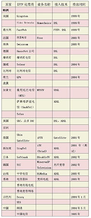 1999年,英國Video Networks公司率先在全球推出了IPTV業(yè)務(wù),此后,國外許多電信運營商先后進(jìn)入IPTV市場。但在2004年之前,多數(shù)運營商僅側(cè)重于IPTV的試驗,2004年后,IPTV開始從試驗階段向商用階段轉(zhuǎn)變,許多業(yè)界人士認(rèn)為,2005年將成為IPTV年。