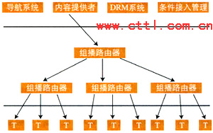 在提供組播業(yè)務(wù)時可采用兩種實(shí)現(xiàn)方式。一種方式是利用組建IP網(wǎng)絡(luò)的具有組播功能的路由器提供對一組用戶的組播,信息源僅需將需要進(jìn)行組播的信息發(fā)送給具有組播功能的路由器,組播路由器將為該信息所提供的組播組編號返回給信息源,信息源將該組播組編號向擬獲得該信息的用戶公布,用戶通過加入相應(yīng)的組播組編號加入到組播組從而接收到發(fā)送到組播組的組播信息。另一種方式是,信息源將信息發(fā)送到一個內(nèi)容分發(fā)設(shè)備,并將欲發(fā)送到的用戶的地址信息發(fā)送到該分發(fā)設(shè)備,由該分發(fā)設(shè)備將信息同時發(fā)送到列表中的所有用戶,完成組播服務(wù)。