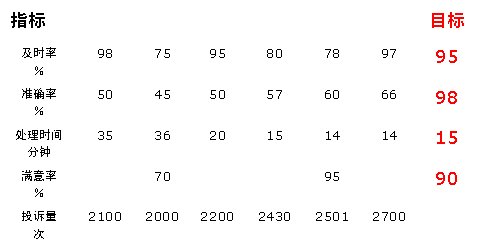 在日常工作中,業(yè)績評估在運營商客戶服務部門的工作中地位非常重要。在績效考核的過程中,經(jīng)?赡墚a(chǎn)生多方對同一個結(jié)果有不同評價的現(xiàn)象,這大多是由于各方的評價標準和評價方式不同產(chǎn)生的。如:當我們問一位投訴管理員“投訴管理管得怎么樣?”的時候,如果他的回答是“還可以”,則會產(chǎn)生很大的歧義。表1是1-6月份投訴處理流程的主要相關(guān)指標情況。