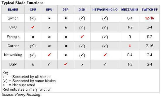 - 運(yùn)營商刀片:具有四個(gè)mezzanine插槽但沒有全交換或網(wǎng)絡(luò)特點(diǎn)的node board。其中有些亦支持處理、存儲(chǔ)和I/O功能。