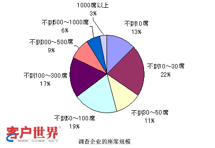 那么和剛才雜志社調(diào)查的結(jié)果是一樣的。這個(gè)數(shù)字又是政府方面調(diào)查的結(jié)果,他們調(diào)查的很細(xì),對(duì)很小規(guī)模的,比如說1-4人的呼叫中心都進(jìn)行了調(diào)查,并且看到這種小規(guī)模的呼叫中心還占有很大的比例?梢钥吹,10人以下的呼叫中心可能在這個(gè)結(jié)果里面占了基本上高于50%,所以可能得到一個(gè)結(jié)論,就是在日本小型的呼叫中心非常多。