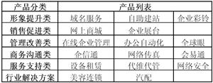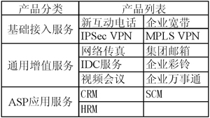 表1 中國(guó)網(wǎng)通“寬帶商務(wù)”主要產(chǎn)品