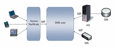 IMS網(wǎng)絡(luò)選擇SIP協(xié)議作為呼叫控制協(xié)議,選擇Diameter協(xié)議為運行AAA(認證、授權(quán)、計費)功能的協(xié)議,在網(wǎng)絡(luò)安全方面采用IPSec技術(shù)和TLS安全傳送協(xié)議。IMS體系結(jié)構(gòu)包括應(yīng)用層平面、控制層平面、媒體層平面3個部分。應(yīng)用層包括了多種類型的應(yīng)用服務(wù)器,這些主持和執(zhí)行服務(wù)的SIP實體,可操作在SIP代理模式、SIPUA模式和SIPB2BUA模式下。應(yīng)用層為用戶提供多媒體業(yè)務(wù),它獨立于網(wǎng)絡(luò)的接入層、核心控制層存在,能保證業(yè)務(wù)開發(fā)和提供的獨立性?刂茖犹幚頃捫帕睿刹煌墓δ軐嶓w來處理信令流,x-CSCF(呼叫會話控制功能)、HSS(歸屬用戶服務(wù)器)、MGCF(媒體網(wǎng)關(guān)控制功能)、MRFC(媒體資源功能控制器)等實體協(xié)同操作,提供用戶的統(tǒng)一認證、呼叫控制、策略管理、漫游和計費等功能。媒體層作為一個媒體宣告服務(wù)器,直接在用戶之間、用戶和IMS媒體功能(如媒體資源控制處理器MRFP)之間傳輸媒體流。