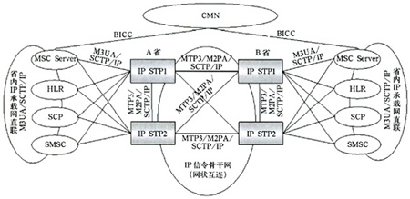 綜上所述,建議IP信令網(wǎng)應(yīng)該采用分層結(jié)構(gòu)。對于省際的MAP、CAP信令采用GT尋址方式,IP STP提供GTT功能;對于省內(nèi)的MAP、CAP信令采用目的地信令點編碼尋址方式,初期可以采用直聯(lián)方式,通過IP STP轉(zhuǎn)接的準直聯(lián)作為備用路由。省內(nèi)、省際BICC信令通過TMSC Server或CMN轉(zhuǎn)接。