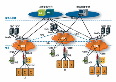 從網(wǎng)絡(luò)實(shí)施的角度看,網(wǎng)通決定遵循IMS架構(gòu)進(jìn)行網(wǎng)絡(luò)部署,采用了如圖1的三層結(jié)構(gòu)。