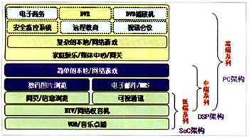 當(dāng)前國內(nèi)IPTV業(yè)務(wù)試點(diǎn)中采用的機(jī)頂盒,包括華為、中興、UT等主流廠商都主要采用了基于DSP架構(gòu)的技術(shù)解決方案,除能滿足點(diǎn)播、直播等標(biāo)清業(yè)務(wù)需求外,還可通過軟件升級(jí),以支持信息瀏覽、簡(jiǎn)單的本地/網(wǎng)絡(luò)游戲等增值業(yè)務(wù),基本上可滿足上述業(yè)務(wù)一定規(guī)模用戶商用要求。