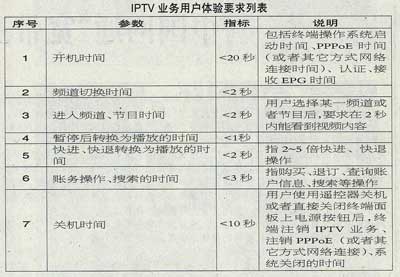 IPTV業(yè)務(wù)用戶體驗(yàn)要求如下表所示。