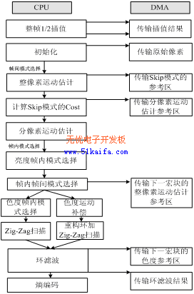 只依靠上面這些方法進(jìn)行優(yōu)化,視頻壓縮還不能達(dá)到實(shí)時要求,還需要進(jìn)行算法級優(yōu)化,以及對編碼器中各個模塊進(jìn)行程序代碼級的優(yōu)化。常通過采用內(nèi)聯(lián)函數(shù)、軟件流水、線性匯編優(yōu)化等方法,以及合理使用針對視頻處理而設(shè)計的特殊指令集,充分利用DM642內(nèi)部的并行計算單元,提高了程序的運(yùn)行速度。由于篇幅有限,對這些優(yōu)化方法本文不再重點(diǎn)論述。