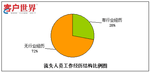 呼叫中心由于高壓力、24小時(shí)輪班等工作特性,有相當(dāng)比例的流失是因?yàn)椴贿m應(yīng)工作環(huán)境而導(dǎo)致的,其中一個(gè)主要原因就是新入職員工想象中的工作環(huán)境和現(xiàn)實(shí)情況大相徑庭。而有呼叫中心工作經(jīng)驗(yàn)的員工對(duì)于這點(diǎn)的適應(yīng)性相對(duì)較強(qiáng),因此我們對(duì)呼叫中心員工是否有行業(yè)經(jīng)歷方面的情況進(jìn)行了統(tǒng)計(jì)分析。