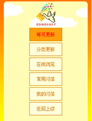 進(jìn)入“發(fā)送閃信”后發(fā)現(xiàn)動畫的內(nèi)容細(xì)致的進(jìn)行了分類,共有 “好玩、動作、傳情、祝福、感慨”五大類。但是初次安裝閃信軟件時,這些分類里的動畫內(nèi)容是沒有的,需要進(jìn)入“更新閃信“功能項(xiàng),更新安裝“常用閃信。”在“常用閃信”安裝不完整的情況下,每次進(jìn)入“更新閃信”功能項(xiàng),系統(tǒng)都會提示安裝常用閃信。大家還可以選擇“更新閃信”功能項(xiàng)里面的“每月更新”。
