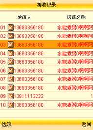 收發(fā)記錄里面詳細(xì)的記錄了所發(fā)生和接收的閃信的。選中一條信息,按中建就可以方便的查看這天信息的內(nèi)容(動畫、文字信息、時間一目了然)。選擇左軟鍵里面的選項(xiàng)可以快捷方便的進(jìn)行“回復(fù)、轉(zhuǎn)發(fā)、刪除”等操作。