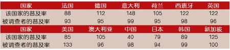 調查結果顯示,超過50%的受訪者會在家里使用手機打電話,在中國和韓國,這一比例甚至高達90%。在家使用手機上網(wǎng)的情況剛好相反,大部分的被調查者表示他們不會在家使用手機上網(wǎng),相比之下,中國和日本用手機在家上網(wǎng)的人數(shù)較其它國家多一些。