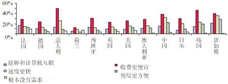 相對來說,選擇手機電視和視頻的用戶較少,即便亞洲國家也是如此。這一結果令人失望,因為視頻功能已經推出多年,并且手機電視也在很多國家推出了幾年時間,期間,很多國家將大量資金投入到終端設備的研發(fā)上,但是調查結果表明,用戶并沒有很強的在手機上收看視頻和電視的愿望,手機電視和視頻的推廣效果并不理想。