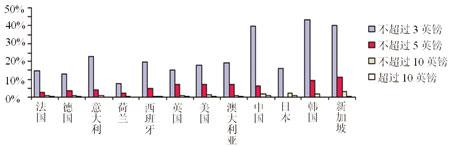 在那些少數(shù)愿意購買手機電視和電影大片的被調查者中,大部分人愿意每月支付不超過3英鎊的費用。其中,中國、韓國、新加坡的支付意愿較高,歐洲的意大利其次,其23%的被調查者也表示愿意每月支付不超過3英鎊的費用。愿意每月支付3英鎊以上的用戶非常少,在韓國、日本、新加坡這樣的國家,也只有不到11%的人表示愿意每月支付不超過5英鎊的費用。(見圖6)