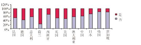 此外,還有一些被調查者表示愿意接受廣告以換取手機電視和電影大片。對于兩種不同的業(yè)務,用戶對這一問題的反應相似。在各個國家中,荷蘭用戶的接受比率較低;在歐洲,西班牙與意大利的接受程度很高;在亞洲,日本、韓國和新加坡的接受比率也很高。(見圖7)