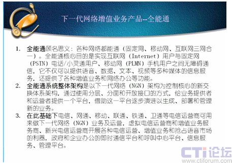 何謂CTI?有許多人都是非常片面的理解,在呼叫中心市場(chǎng)把CTI行業(yè)帶到最紅火的第二次高潮時(shí)許多人都以為CTI就是呼叫中心、呼叫中心就是CTI;2002年當(dāng)呼叫中心市場(chǎng)開(kāi)始出現(xiàn)萎縮時(shí),許多大公司紛紛把CTI裁剪,還有許多公司倒閉時(shí),剩下的公司日子很難過(guò)時(shí),許多人認(rèn)為CTI完了、紛紛轉(zhuǎn)行。我在2003年1月6日‘中國(guó)計(jì)算機(jī)報(bào)社舉辦了2003年CTI和呼叫中心研討會(huì)’時(shí)講過(guò):呼叫中心市場(chǎng)很冷,但CTI市場(chǎng)不冷,CTI行業(yè)又要開(kāi)復(fù)蘇,因?yàn)槲彝ㄟ^(guò)一年多的增值業(yè)務(wù)的摸索,認(rèn)為增值業(yè)務(wù)將重新帶動(dòng)CTI行業(yè)第三次高潮,關(guān)鍵在于增值業(yè)務(wù)的創(chuàng)新應(yīng)用。隨后的幾年里增值業(yè)務(wù)把CTI行業(yè)帶到一個(gè)新的高度,許多人又認(rèn)為CTI就是IVR,就是增值業(yè)務(wù);但到了07年增值業(yè)務(wù)市場(chǎng)嚴(yán)重萎縮,大家又以為CTI不行了、紛紛轉(zhuǎn)行和離開(kāi)。