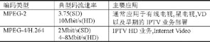 表2 典型MPEG-2 和MPEG-4碼流速率與應用