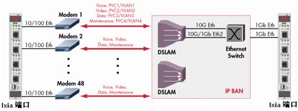 IXIA在實際的寬帶接入和匯聚設備測試中,特點和優(yōu)勢非常明顯,可以仿真真實用戶的行為,比如PPPoE接入方式上運行HTTP和VoIP的流量,同時在Q-in-Q接口上運行IPTV業(yè)務,這種測試方式完全以家庭用戶為單位,非常真實地評估寬帶接入設備的性能。