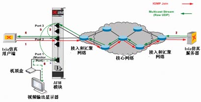 另外一種常見的應用場景是對網絡中存在的IPTV組播流和單播流能夠進行被動實時監(jiān)測并能夠評估相應視頻流的視頻質量。IXIA獨特的視頻流提取模塊AFM支持該特性的測試(見圖6)。