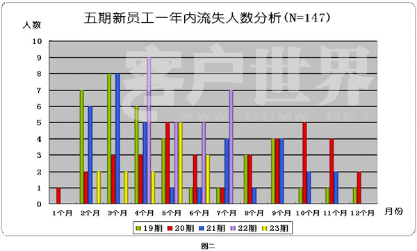 員工流失率控制,在行業(yè)內(nèi)困惑著不少中心領(lǐng)導(dǎo)。業(yè)內(nèi)專家集中精力,采取各種措施,試圖減少流失率對服務(wù)中心成本的影響。為此,本項目組對某客戶服務(wù)中心員工5期新員工進行了17個月的數(shù)據(jù)采集、分析,涉及近200名離職員工的信息分析。從時間變量角度,對新員工內(nèi)心體驗進行闡述,并分析此考察期間,員工負性情緒、工作事件、經(jīng)歷體驗與促使員工離職行為之間的關(guān)系,建立針對問題的性質(zhì),制定干預(yù)策略。本設(shè)想建立在針對員工培訓(xùn)體系進行優(yōu)化,減少已發(fā)現(xiàn)的新員工離職原因?qū)θw員工的影響,從而實際的減少員工流失、工作低績效現(xiàn)象,達到提高組織績效的目的。