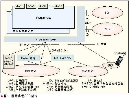 為了解決這一迫切的問題,過去一年中一個新的思路正逐步出現(xiàn),即:如果不能把原來的non-SIP應(yīng)用改造為SIP應(yīng)用,那么就擴展原來的IMS業(yè)務(wù)體系架構(gòu)本身,使其在管理控制SIP應(yīng)用的基礎(chǔ)上,也能夠管理控制non-SIP和non-IMS的應(yīng)用[3]。在這一新的思路下,出現(xiàn)了新的發(fā)展動向:在IMS之上建立開放融合的業(yè)務(wù)提供環(huán)境(SDE),