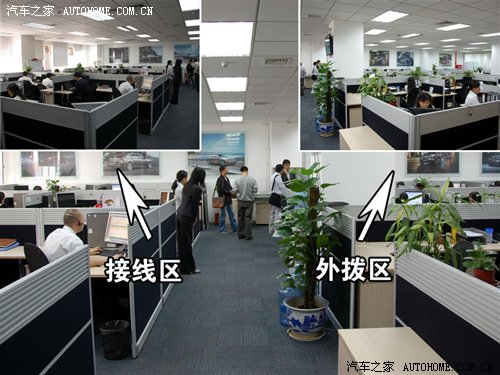 這是寶馬客服呼叫中心大廳,共分兩個區(qū)域,分別是接線區(qū)和外撥區(qū)。(如上圖所示)通過對寶馬呼叫中心的采訪我們得知,客服中心的員工在正式上崗之前有2個月的培訓期,培訓兩個月后才能正式上崗;所以員工一個月共接8000多個電話,所有電話均有錄音。