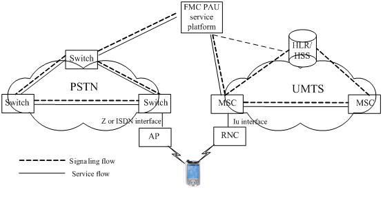 在FMC-PAU中,移動(dòng)終端屬于雙模或多模終端,用戶使用該終端既可以接入到3G移動(dòng)網(wǎng),也可以采用無線方式通過接入節(jié)點(diǎn)(AP)接入到PSTN網(wǎng)絡(luò)中。