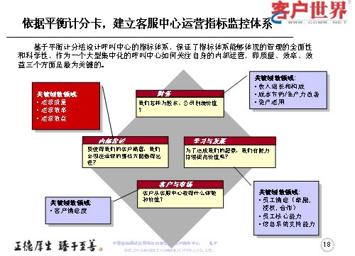第一,是依據(jù)平衡計(jì)分卡原理,建立了客服中心運(yùn)營(yíng)指標(biāo)監(jiān)控體系,以實(shí)現(xiàn)呼叫中心的規(guī)模化經(jīng)濟(jì)運(yùn)營(yíng)。